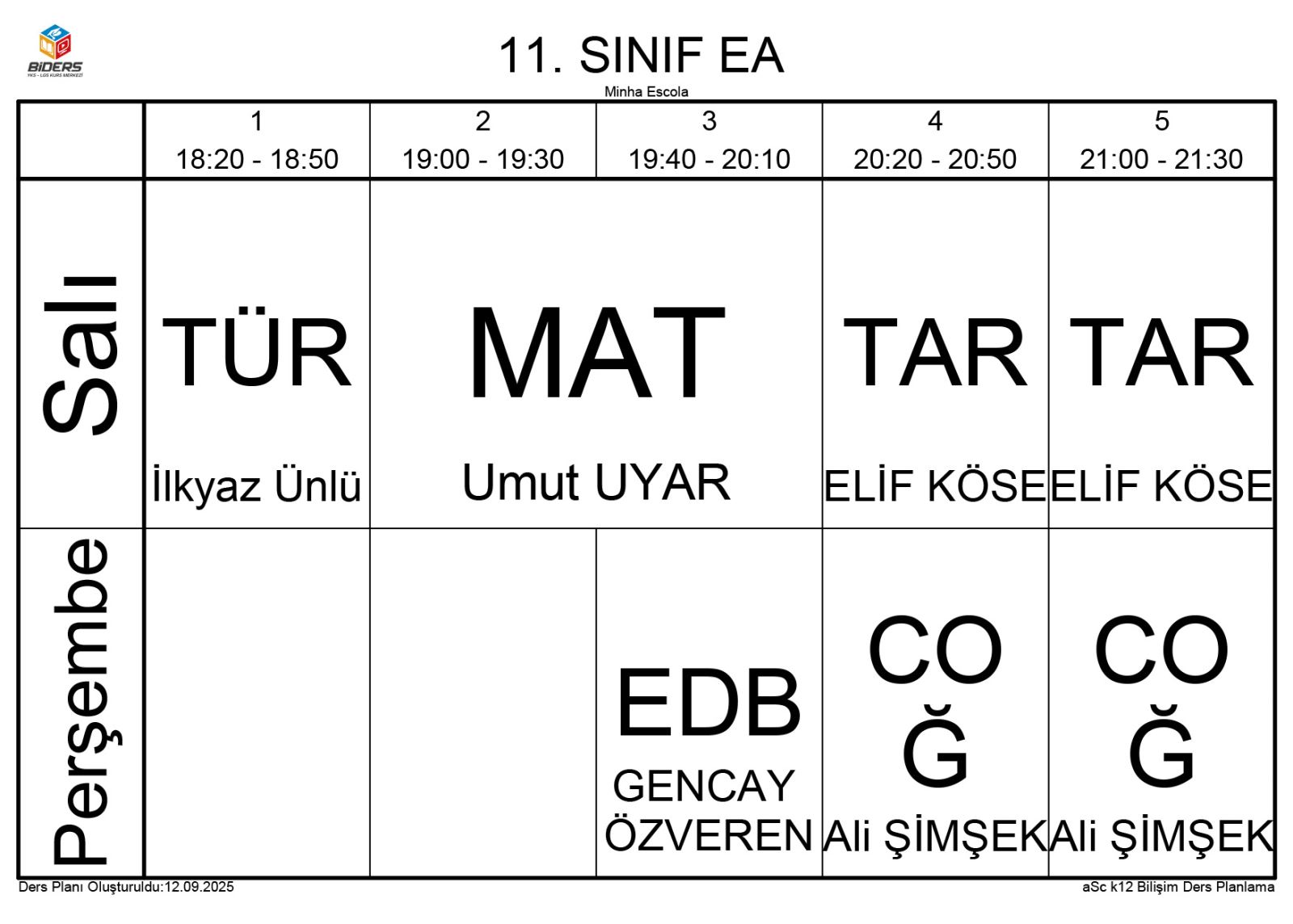 11. SINIF EA - 1. DÖNEM 1. YAZILI ÇALIŞMASI